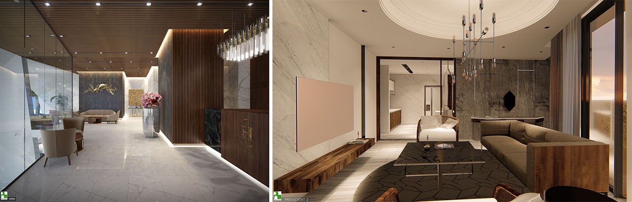 Không gian sảnh đón tiếp được thiết kế theo tone màu ấm là chủ đạo tạo sự ấm áp, thân thiện cho du khách khi đến bước vào khách sạn. Nhờ thiết kế không gian nhiều khoảng rỗng, các phòng tại khách sạn dù thuộc hạng phòng nào cũng đều thông thoáng, tận hưởng được view nhìn đẹp ra thành phố.