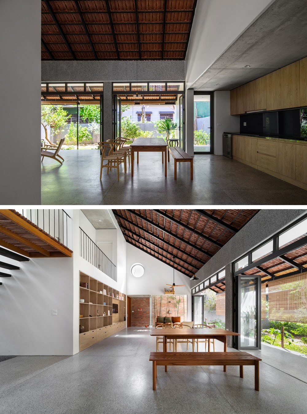 Chủ nhà yêu thích cây cỏ, vật liệu thô mộc, đồ thủ công nên gạch trần, bê tông trần, đá mài, gỗ tự nhiên là những vật liệu chủ đạo được sử dụng cho công trình. Tổng chi phí hoàn thiện căn nhà bao gồm nội thất khoảng 1,4 tỷ đồng.